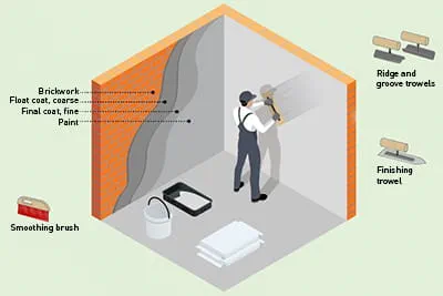 Afhankelijk van de gewenste oppervlaktekwaliteit kunnen voor onderpleister (grof) en bovenpleister (fijn) verschillende materiaalkwaliteiten en korrels worden gebruikt.