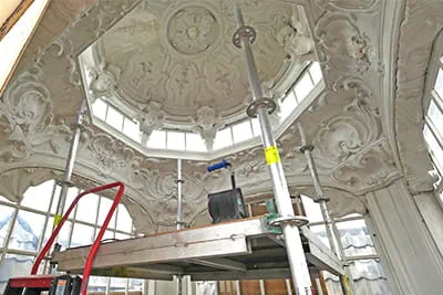 “Een feestje”, zo omschrijft Rian Durrieux het renovatieproject aan de Haagse Prinsegracht. Guirlandes van bladgoud, kroonluchters, krullend pleisterwerk en plafonds compleet met kroonlijst. Binnen de muren van het 17e eeuwse pand heeft de tijd stil gestaan. Met als hoogtepunt het Rococo-stucwerk in het trappenhuis van de Italiaanse kunstenaar David Buono. Het pand deed vanaf 1909 dienst als Antiquariaat Van Stockum. Durrieux startte begin 2019 met de renovatie van het dakwerk en de kozijnen. Een precisieklus die om specifiek gereedschap vroeg. “Het is een prachtige locatie maar er zijn ook nadelen. Zo zijn de doorgangen smal en is er in voorgaande jaren nauwelijks onderhoud gepleegd. Het gebouw bevat nog veel authentieke details die behouden moeten blijven. We waren op zoek naar een handzame machine waar je precies mee kunt zagen. Daarnaast vinden we het belangrijk om snoerloos te werken met het oog op de mobiliteit. De accu-oscillerende VECTURO OSC 18 bood uitkomst.”