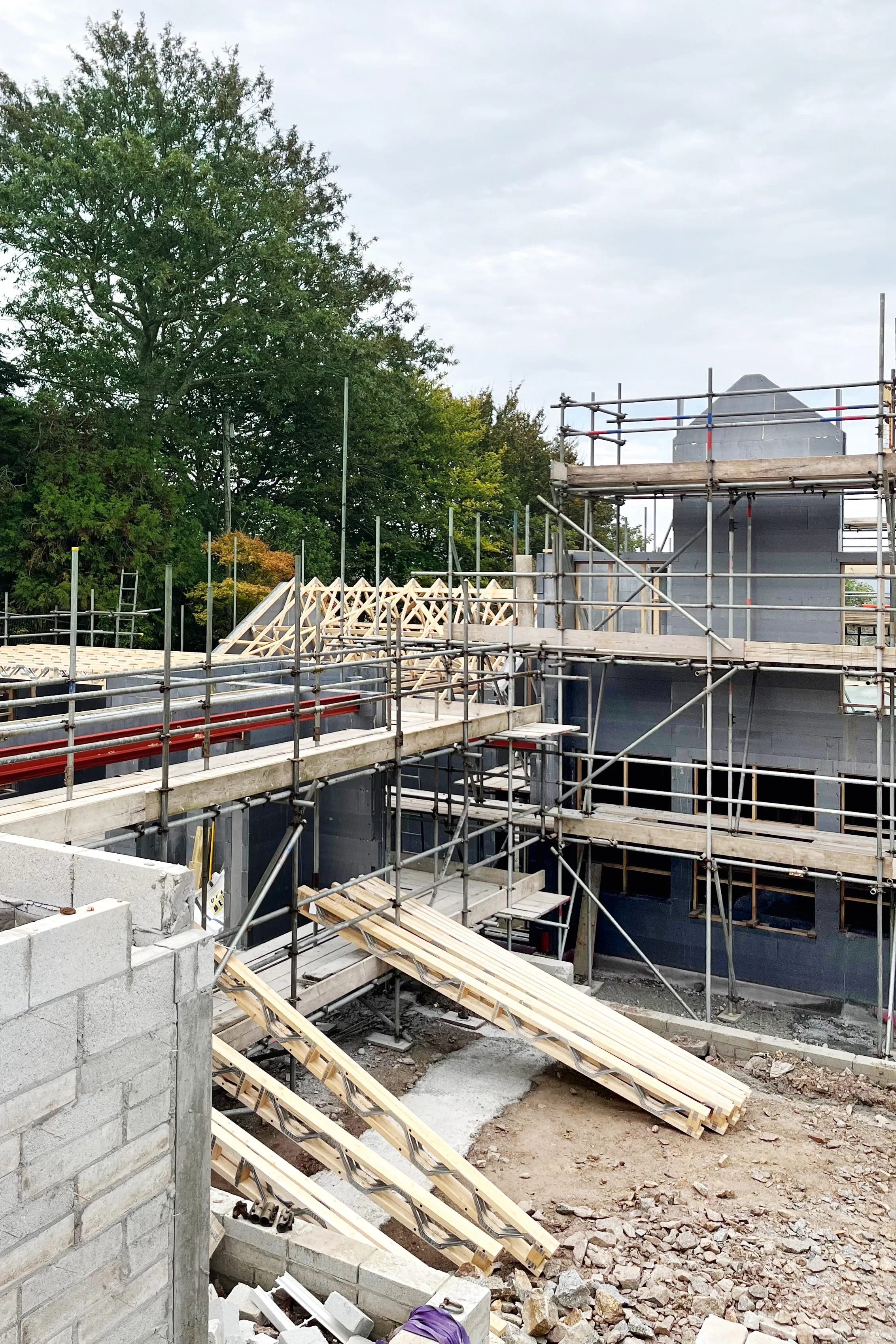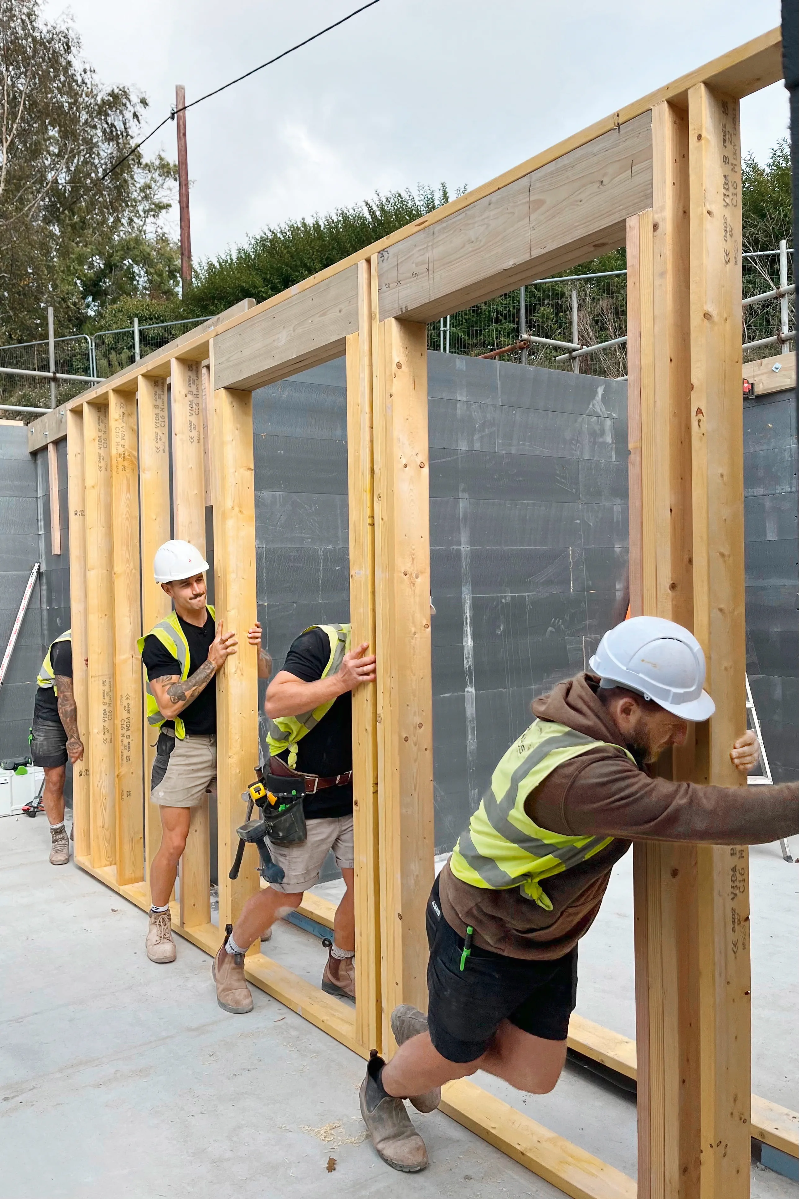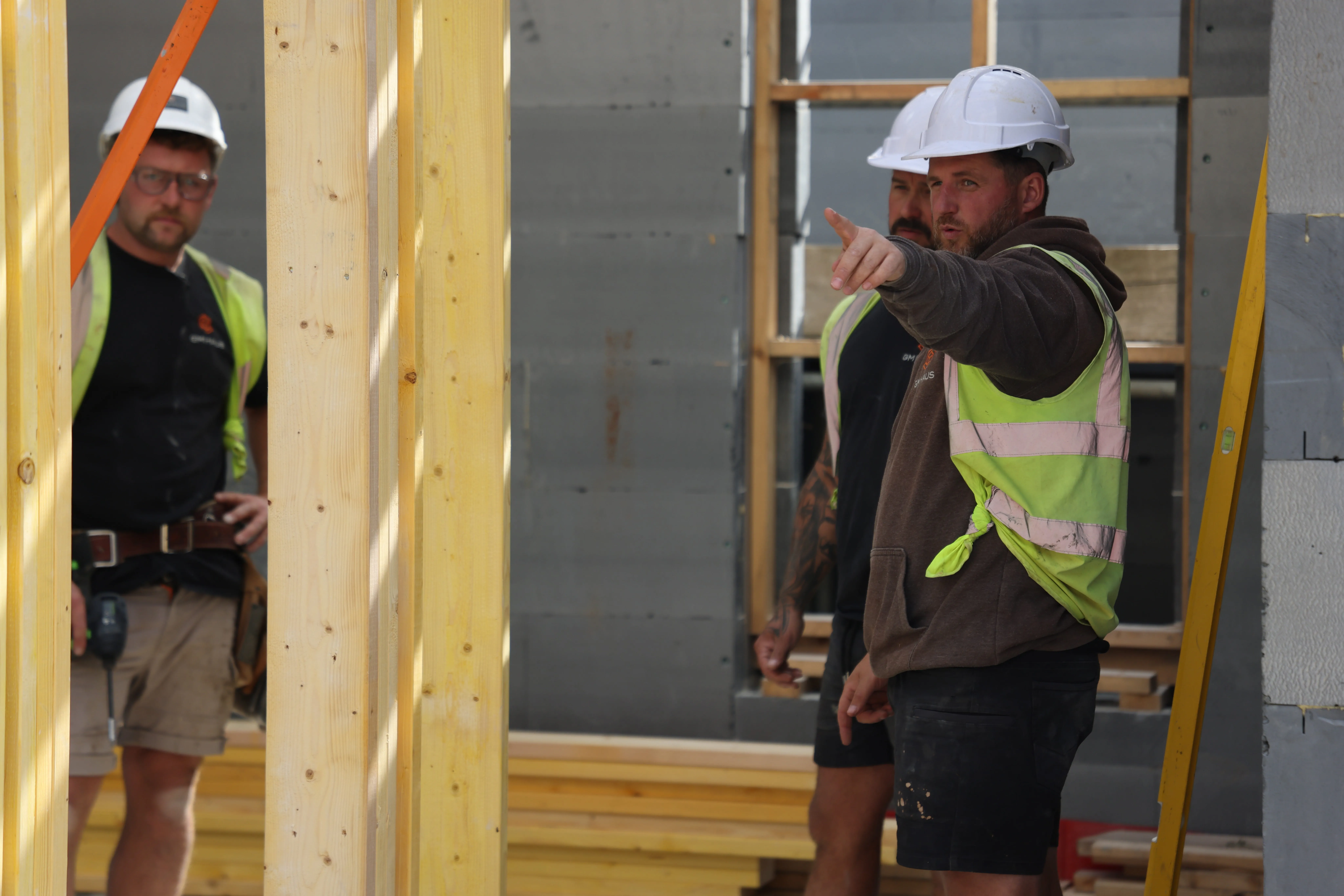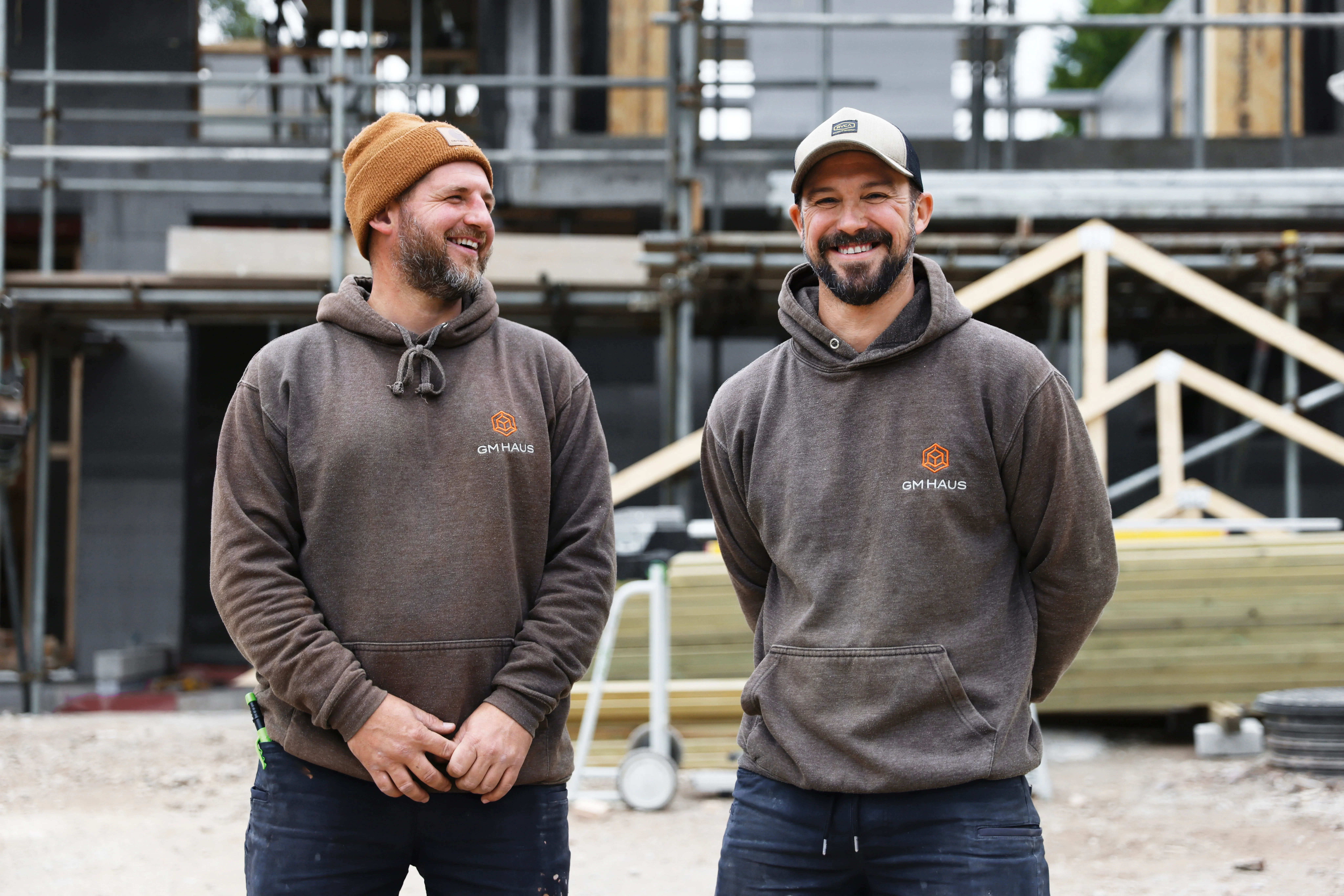 Het project: een gezinswoning - modern, energiezuinig, met veel hout. Sinds februari 2025 zijn Sam en Nathan en hun team bijna elke dag op de bouwplaats. Het bedrijf GM Haus, dat ze vijf jaar geleden hebben opgericht, neemt als "algemene bouwer" eigenlijk het hele bouwproces met alle ambachten: van de sloop van het oude huis constructiewerk, de bouw van dragende houtconstructies tot en met de afwerking van de inrichting. Alles was veeleisend en uitdagend. Maar dat is precies waar de liefde en wat ze vanaf het begin wilden.