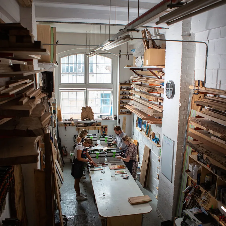"Ik begon ongeveer 16 jaar geleden met houtbewerking en eindigde als docent in Woolwich en begon vier of vijf jaar geleden met het geven van workshops".