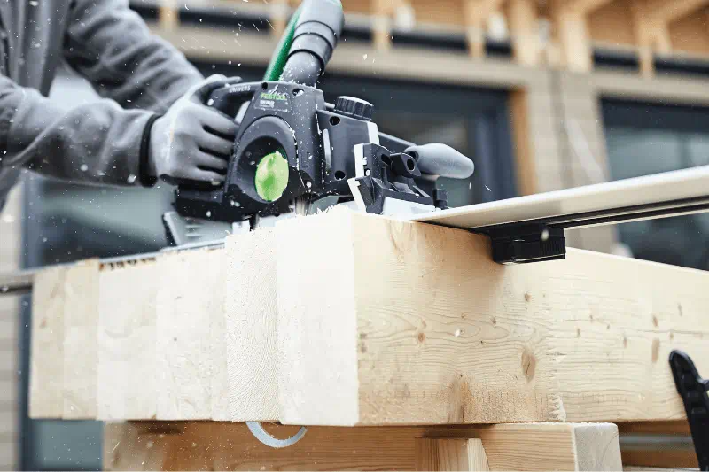 - Kaarsrechte en splintervrije zaagsneden dankzij geleiderail