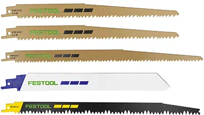 Voor invalzaagsneden moeten alleen korte zaagbladen met een lengte tot 150 mm worden gebruikt. Een uitzondering is hierbij het isolatiemateriaalzaagblad van Festool.