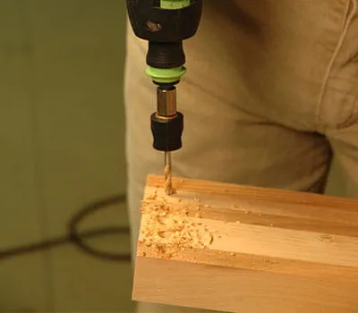 Zaag het kanthout (pos. 3, 4, 8, 14, 15) op de aangegeven maat. Als u alleen andere doorsneden beschikbaar hebt, kunt u met een zaagtafel de gewenste maat zagen. De posities van de boorgaten worden op het kanthout gemarkeerd voordat de gaten worden geboord. Schroef vervolgens de afzonderlijke frames voor de onderconstructie vast (schroefmaat 4,5 x 80 mm).