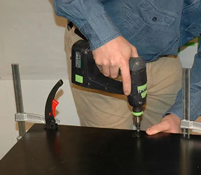 Nadat de frames van de onderconstructie zijn vastgeschroefd, plaatst u de binnenplaten (pos. 2, 7, 13). Bevestig de platen met klemmen en boor de gaten voor de schroeven. Schroef de platen met Spax (3,5 x 20 mm) op de onderconstructie.